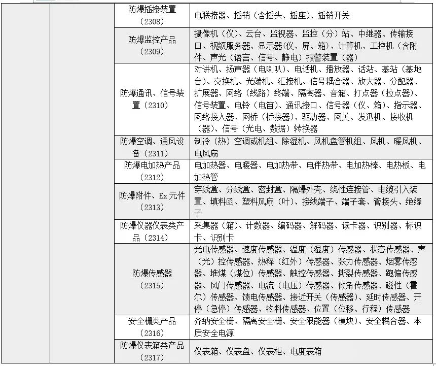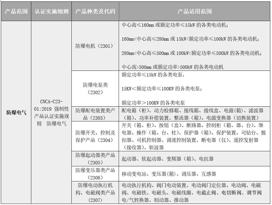 防爆电气转国家CCC认证的产品目录表: